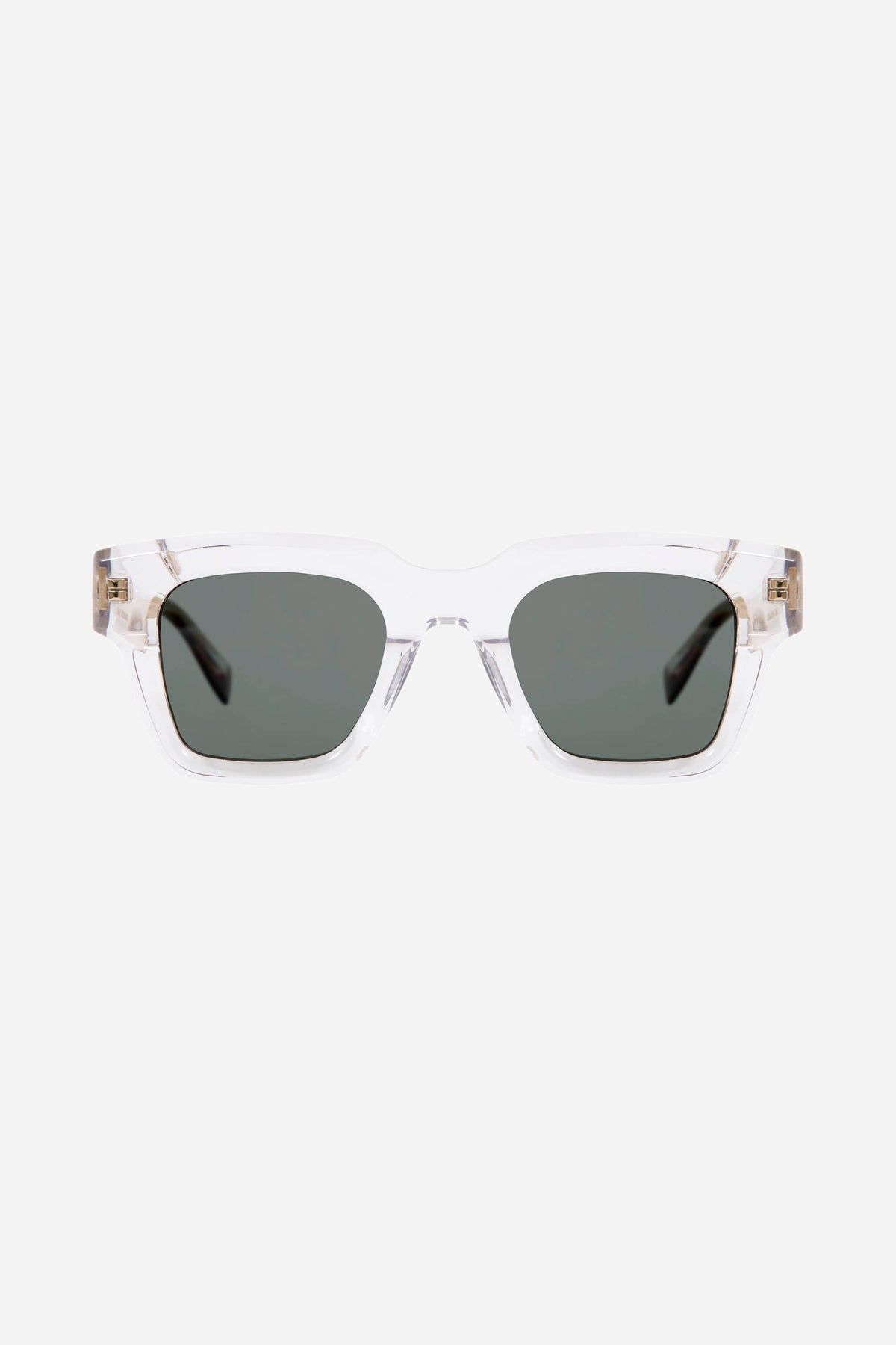 KANT is a sunglass design in acetate with thick, rounded rims, a bevel on the upper edge and wide temples with new two-pin metallic decorations. High-end CR39 lenses with maximum UV protection and high visual comfort.