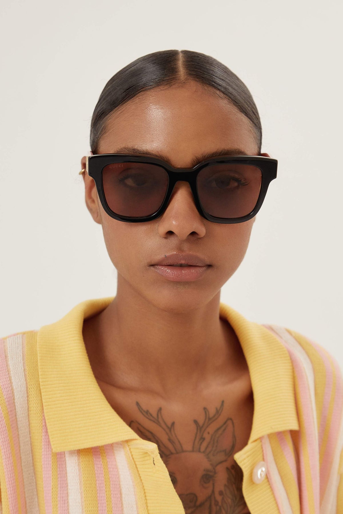 Feminine squared shape in acetate chacacterized by bold volumes and strong personality.