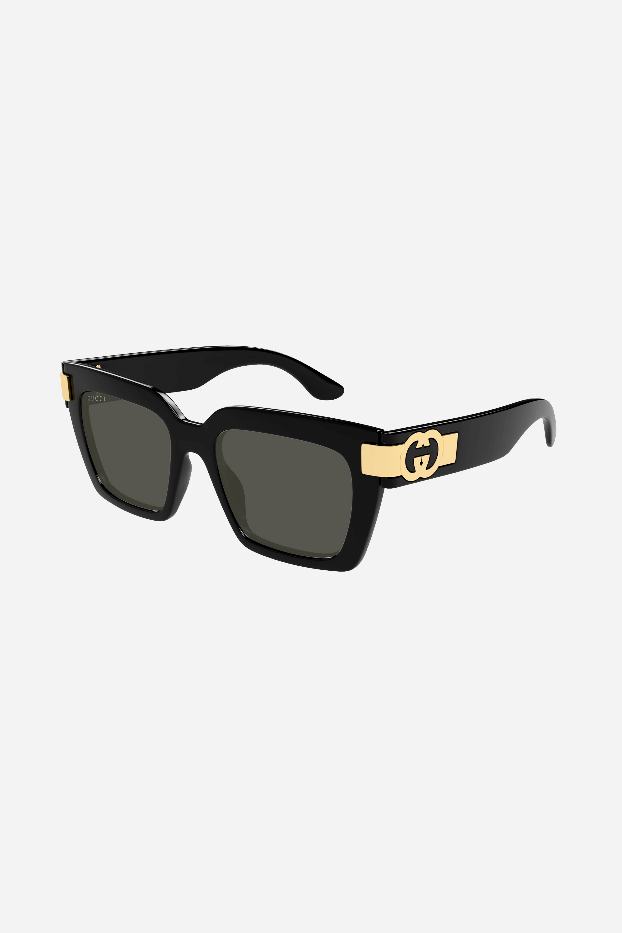 Black and grey Gucci sunglasses with gold logo