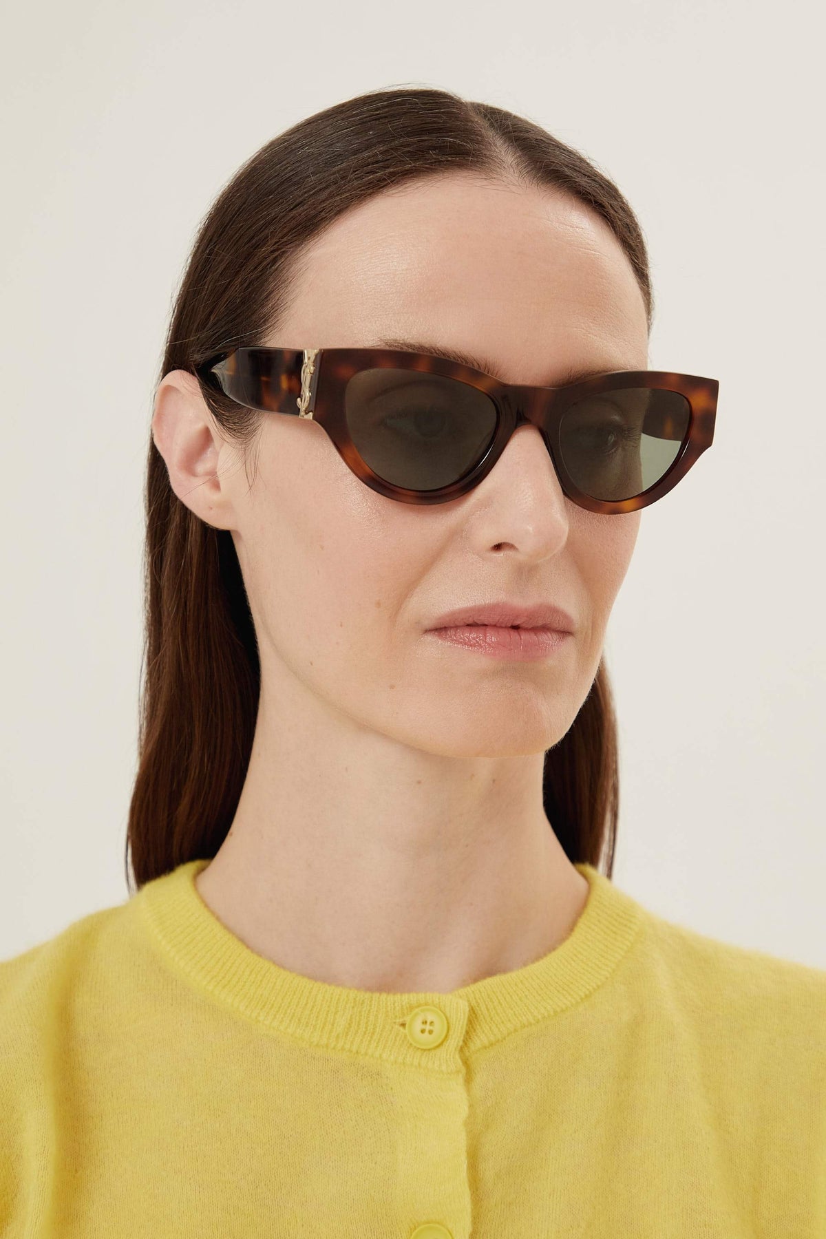 Saint Laurent havana forma a mandorla con logo YSL in grassetto