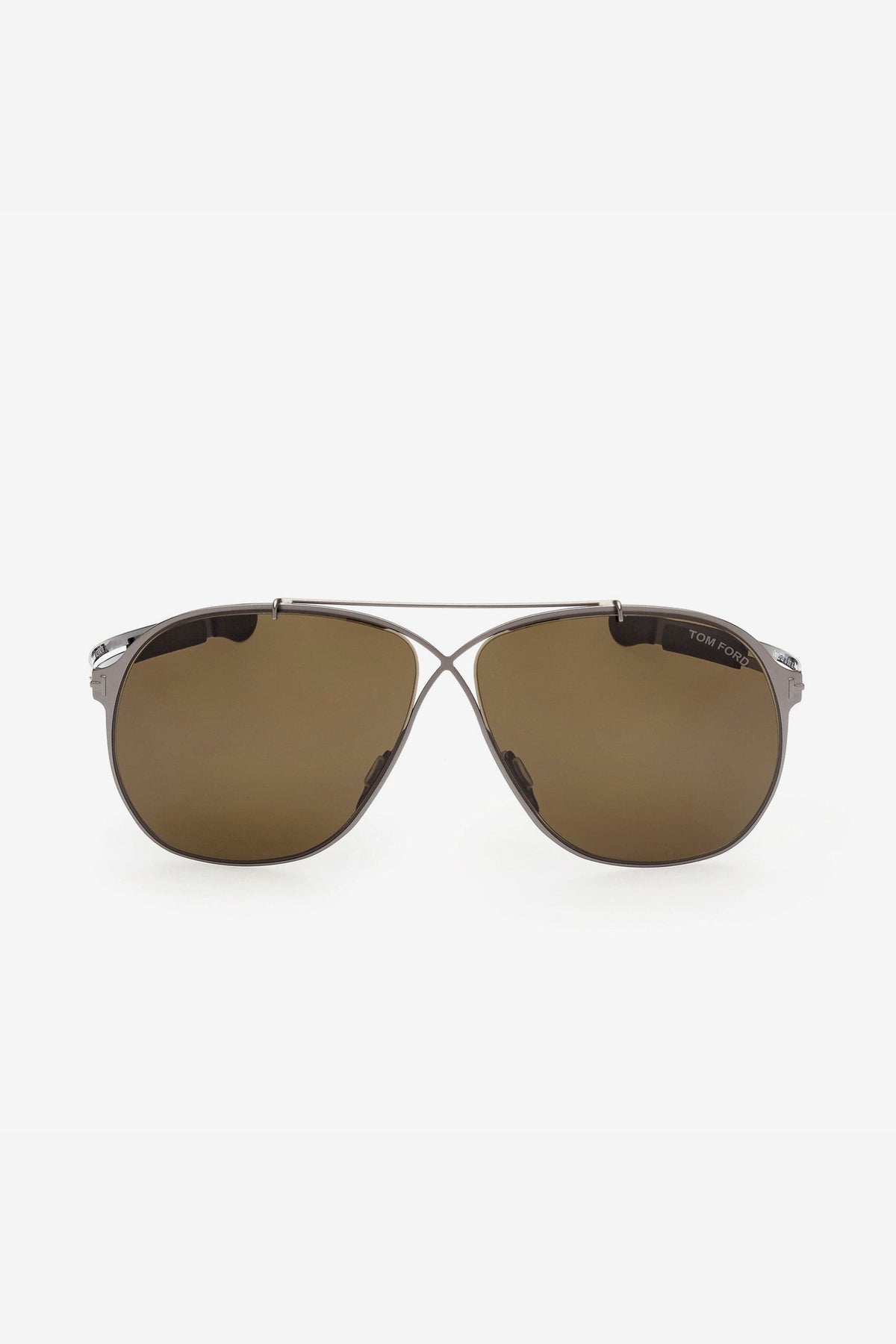 Occhiali da sole sportivi oversize Tom Ford da pilota con lenti marroni
