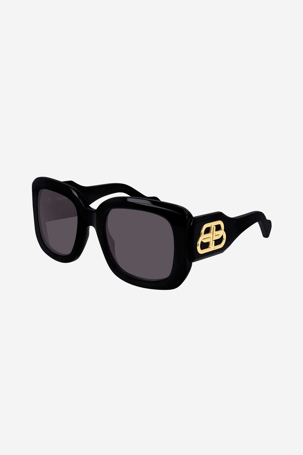 Occhiali da sole Balenciaga neri audaci con logo BB