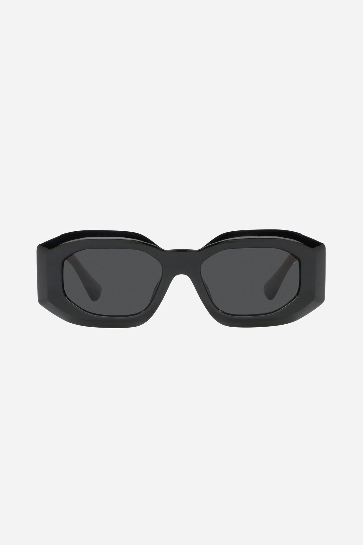 Occhiali da sole ovali Versace Biggie Bold in nero con l'iconica medusa