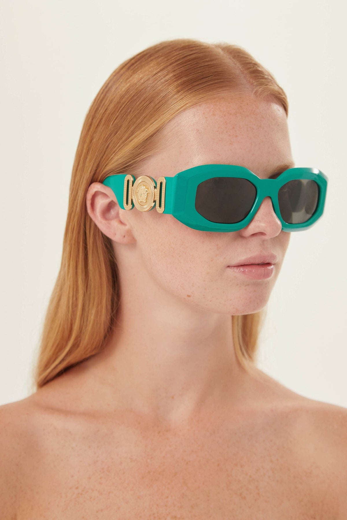 Occhiali da sole Versace Biggie Bold in verde acqua con l'iconica medusa