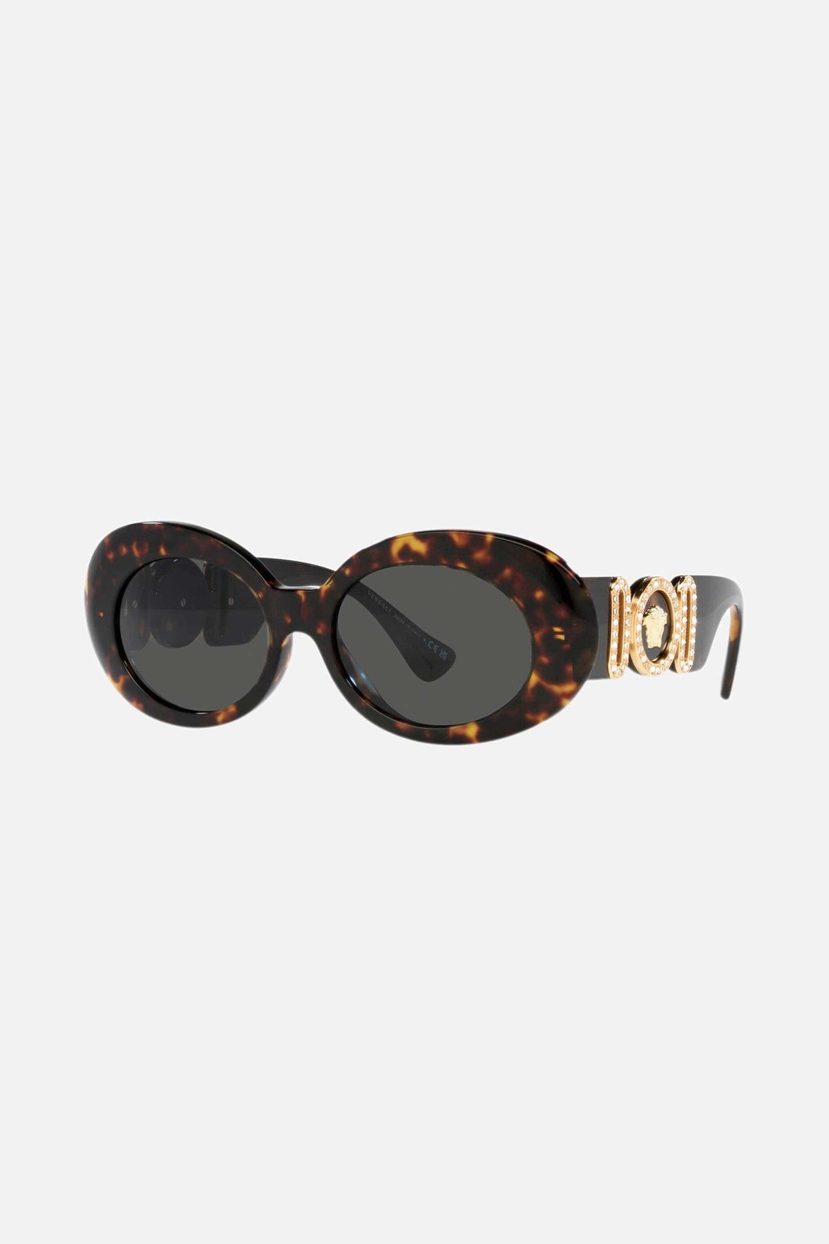 Occhiali da sole ovali Versace Biggie in Havana con l'iconica medusa