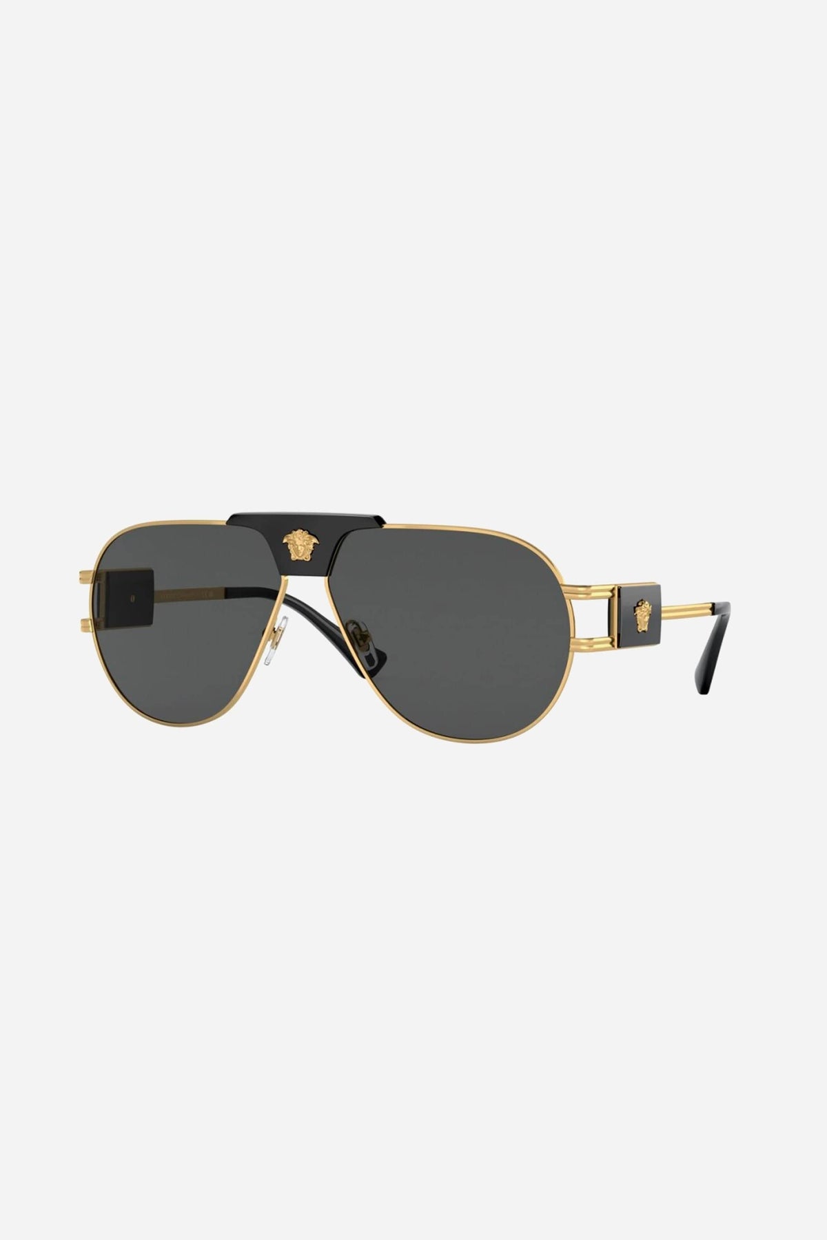 Occhiali da sole pilota Versace in metallo nero con l'iconica medusa e dettagli dorati