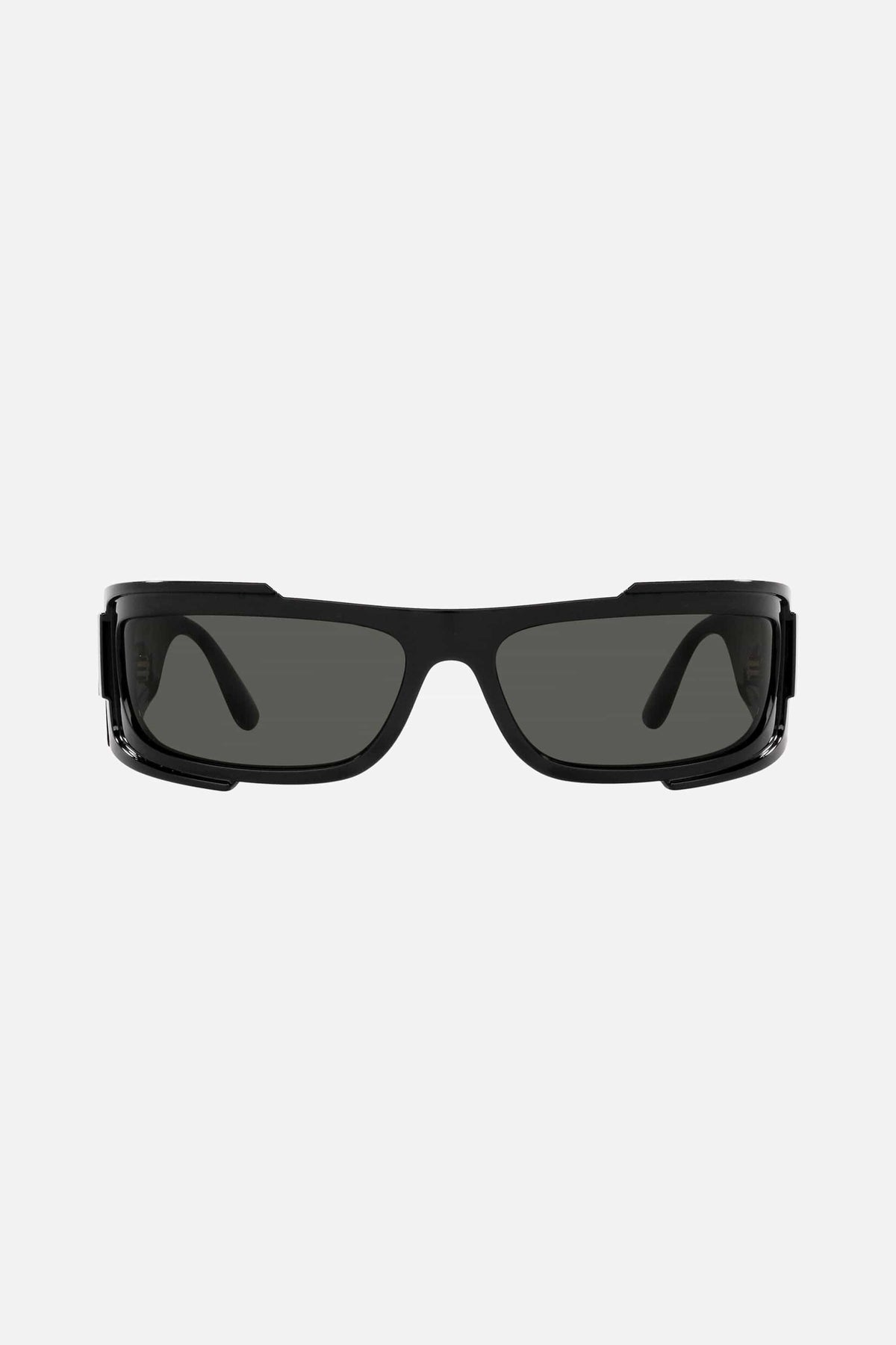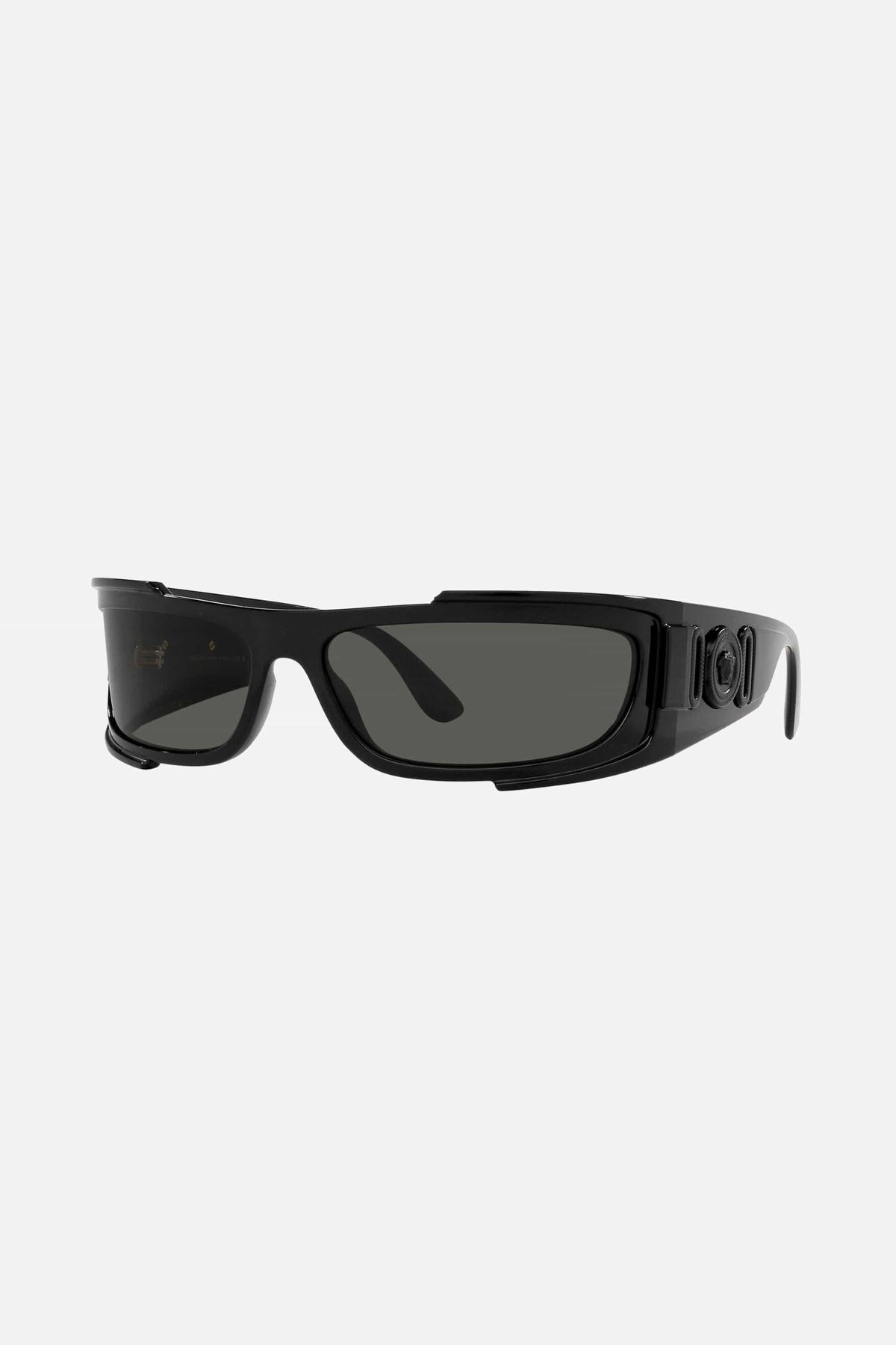 Occhiali da sole rettangolari neri Versace con l'iconica medusa